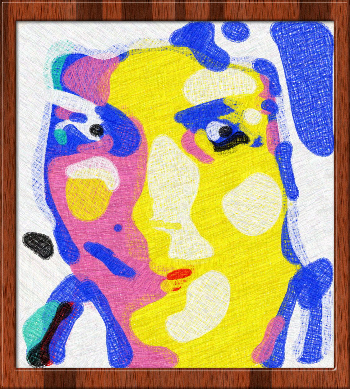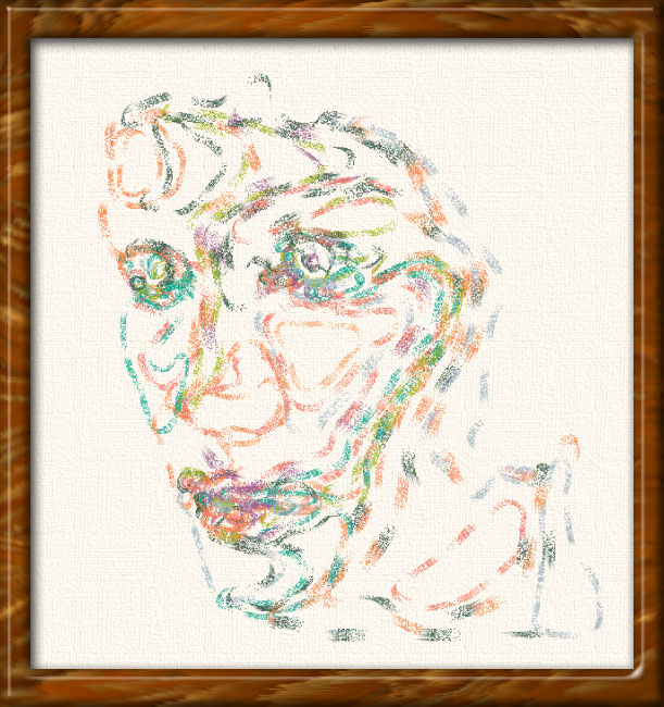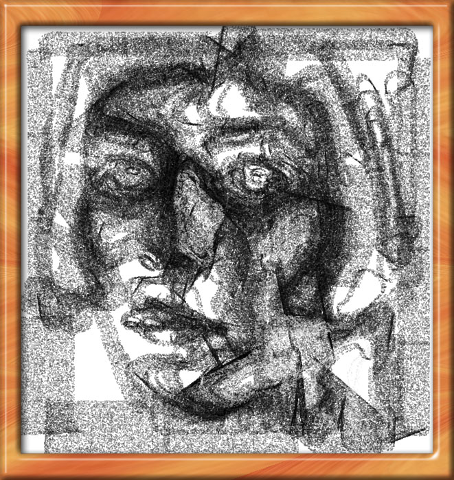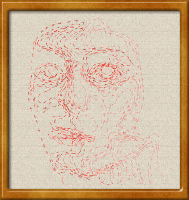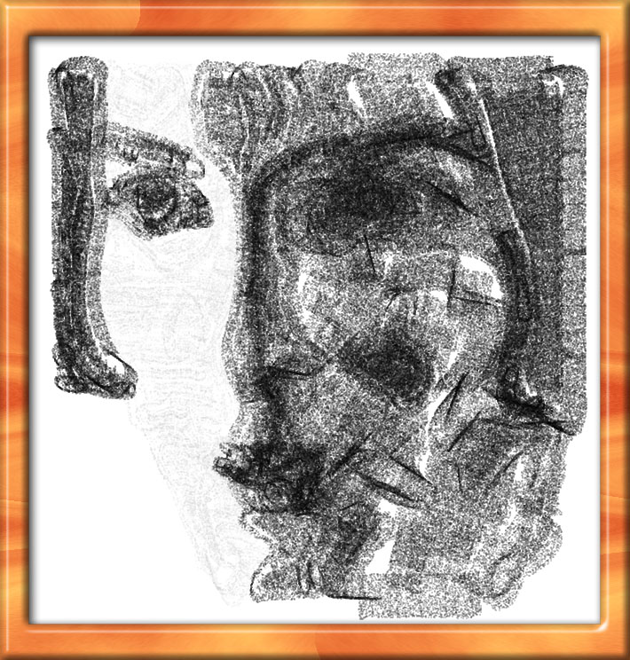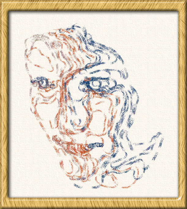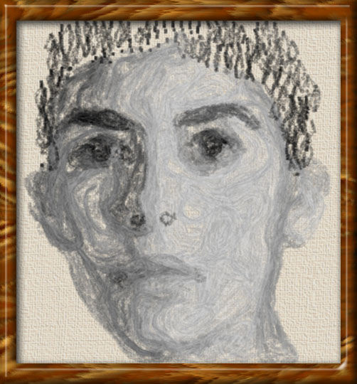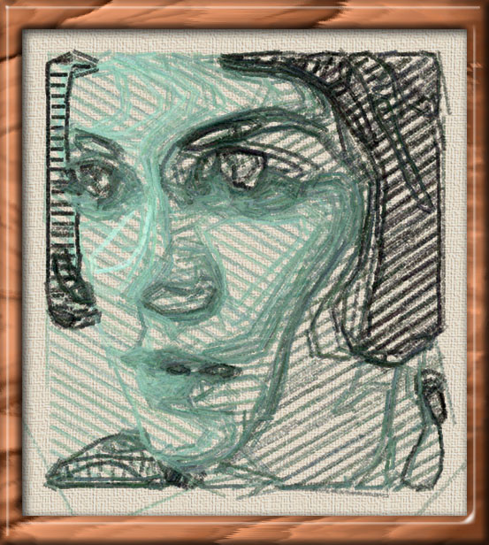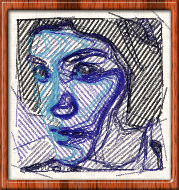 I wanted to see if I could get texture and depth with simulated pencils to draw out grid structures. I also stretch out the face vertically to try to heighten the wire mesh effect. There are a couple of pictures like this in the gallery: #126 and #205, but these are not stretched.