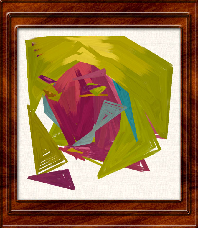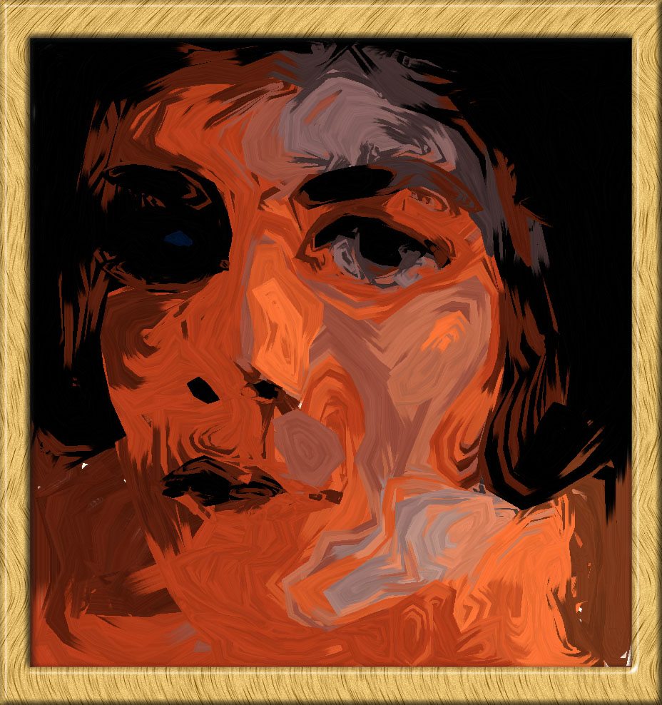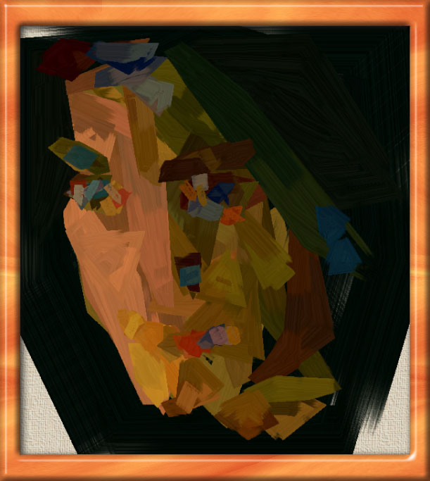 I really lay the simulated paint on thick here, with an over-sized brush and jagged paint regions. The effect produced is highly abstract with the subject barely recognisable. This is painting #79 in the gallery. For even more abstract jagged pieces, see #151, #162 and #163.