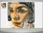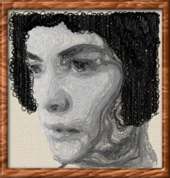 With only a few quick strokes of a simulated dry brush, I manage to highligh her pensive nature in this picture. I avoided painting other aspects such as hair and clothes, so that we can concentrate on her eyes. This is picture #202 in the gallery, but there are others which are similar: #6, #102, #110 and #201.