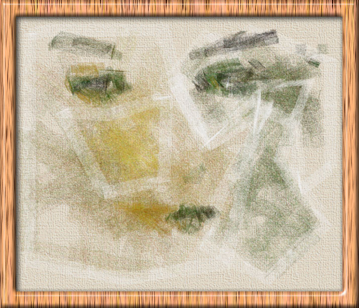 I restrict the palette to greens and yellows here, and I also abstract the paint regions by giving them straighter edges. This produces quite a sketchy piece, and the viewer has to work a little to pick out the features. This is picture #53 in the gallery. #169 is similar, but the overall effect is less melancholic.