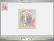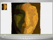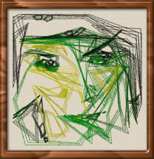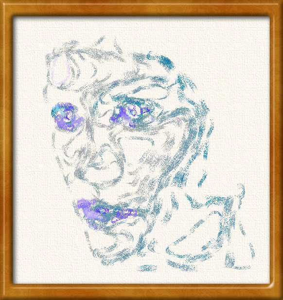 I achieve a nice effect here by filling in the paint regions from the outside in in a star-like fashion. When the facial features are placed on top, the effect is to highlight the sense of anticipation in the picture. This is gallery picture #184. I use the same effect in #133, which is smaller.