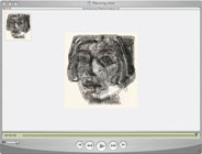 This is a very quick sketch, where I stretch the representation of the face to a limit. With high abstraction and little detail, the image approaches decoration rather than representation. This is picture #119 in the gallery, and is from perhaps my favourite series. See also: #22 and #197.