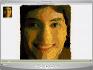 In this picture, I first cover the paint regions with a star-like pattern, but then disguise this with random paint strokes. This adds to the overall fun of this picture, where she is smiling broadly. This is picture #216 in the gallery, and picture #121 achieves a similar effect.